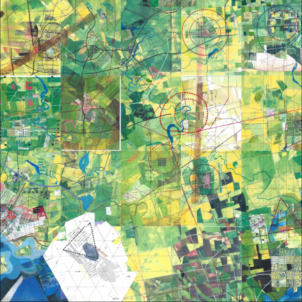 In the summer of 1963, Michigan native Jerry Gretzinger began drawing a map of an imaginary city. He says: “The work started as a doodle done in the spare time I had while working at a tedious job. I continued to add to that map through the years until, in 1983, I set it aside to put my free time to other use. The Map was stored in the attic of our home in Cold Spring, New York. It gathered dust. My son, Henry, found it one day while rummaging around. He brought it down to me and asked what it was. Seeing it then triggered me to dust it off and continue the project. It now comprises over 3200 individual eight by ten inch panels. Its execution, in acrylic, marker, colored pencil, ink, collage, and inkjet print on heavy paper, is dictated by the interplay between an elaborate set of rules and randomly generated instructions.”