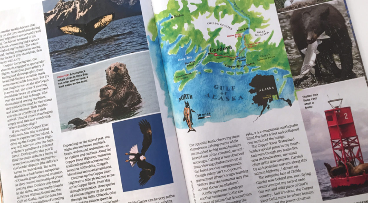 My map illustration of Cordova, Alaska and the Copper River Delta was recently published in a travel feature in the December/January 2019 issue of Country magazine. “Cordova is known to locals as Alaska’s hidden treasure. It’s a small, hard-working fishing community with a population of about 2,270. Located near the mouth of the Copper River, it nestles peacefully at the head of Orca Inlet in Prince William sound and has a mystique all its own The area has glacier-carved mountains, wildlife-rich wetlands, lush forests and countless waterways that host many exciting activities such as skiing, hiking, wildlife photography, boating, sport fishing, “flight-seeing” and much more.” (Source: Alaska.org) Click here to download or order a printed map of Alaska to start planning your visit!