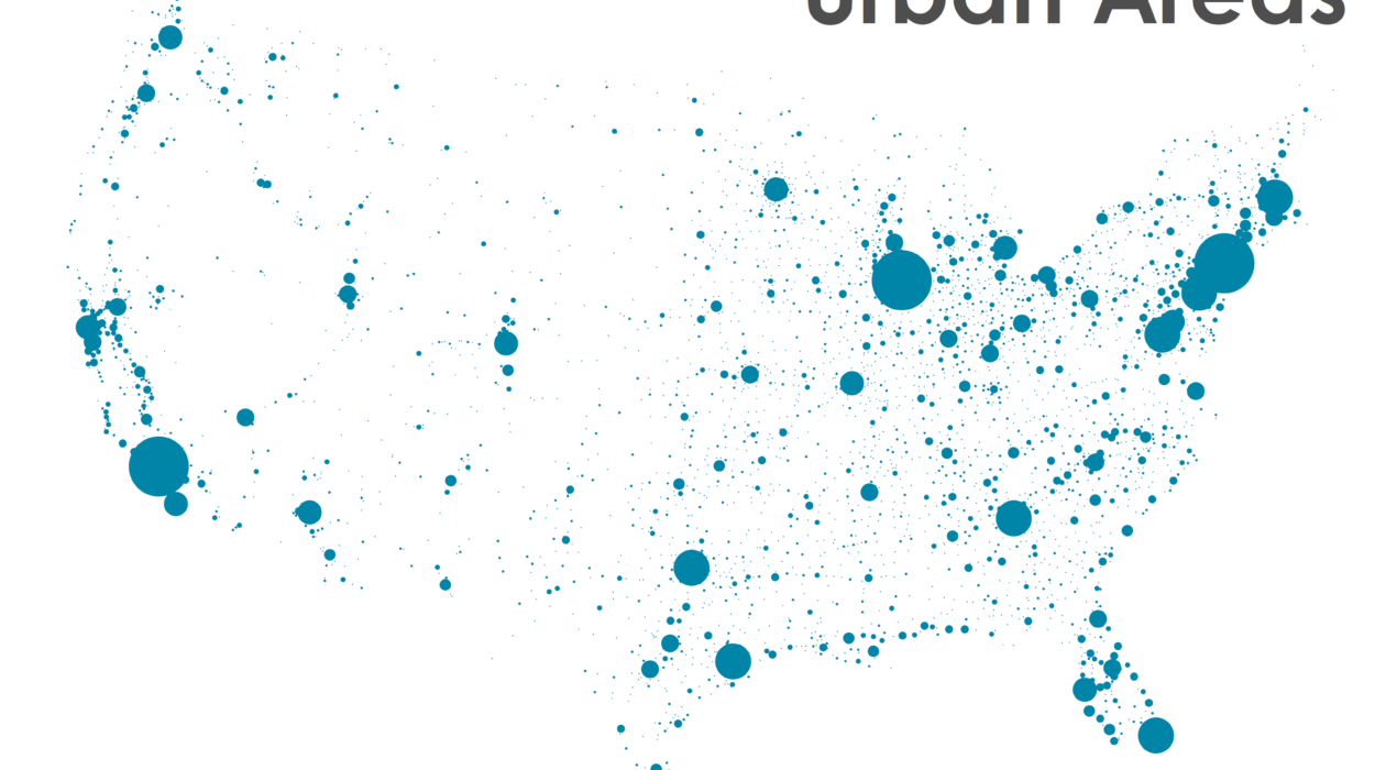 Cities vs Metropolitan Areas vs Urban Areas. Which term is the most accurate to describe concentrated human populations? “Urban areas” is probably the most accurate, denoting contiguous clusters with a population density above 1,000 people per square mile. Being defined based on population density rather than political borders means urbanized areas are a closer measure for the true size of any city. They measure what’s really there, rather than where governments drew arbitrary lines centuries ago. Check out a deeper explanation and larger map here. [Source: ggwash.org]