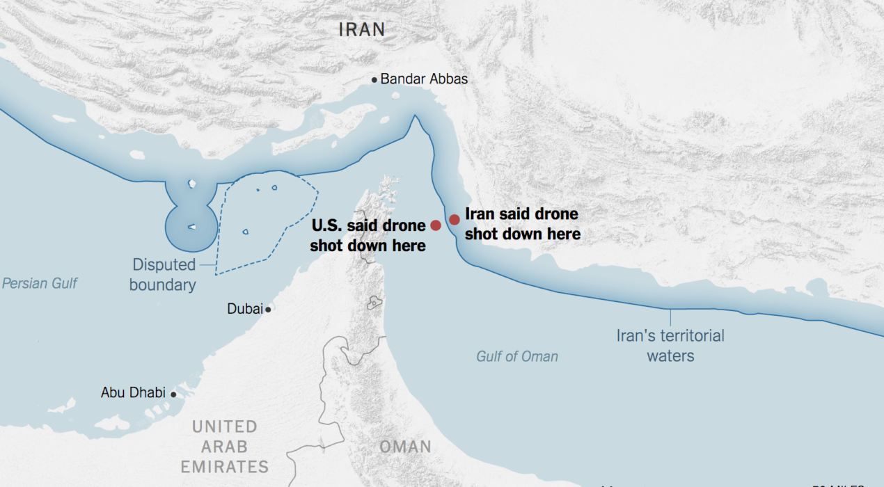 This has been a turbulent week for U.S.-Iranian relations, as Iran has been accused by the United States of shooting down an American drone plane over international waters. Iran, however, maintains that the plane was over their airspace and therefore they were justified in shooting it down. Who is right? This map was released by the Pentagon to show where we say the incident occurred, versus Iran’s account. Yet another example of how vitally important maps are in making sense of our world! [Source: nytimes.com]