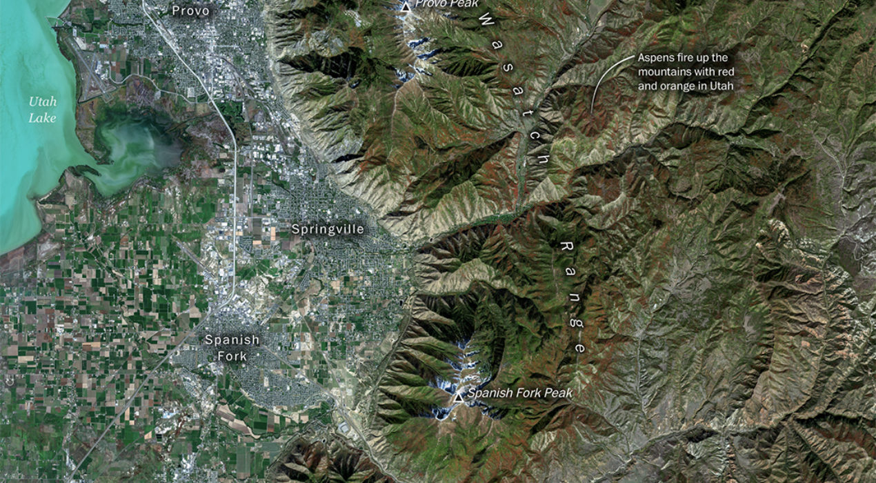 “The progression of fall creates a wave of color across the country, with grassy plains and farmlands in the Midwest drying up, and the trees of the East Coast rolling from green to yellow/orange/red to brown. Descartes Labs collected and analyzed 10 years of satellite imagery to develop this cloud-free animation of fall in the eastern United States.” [Source: Washington Post]