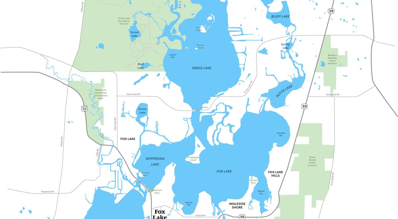 This is a custom map I created for a future map designed to show handicapped-accessible boat ramps, docks and marinas, along with various shops, pubs and restaurants. The client wanted a map that was up-to-date, crisp, uncluttered and editable for his particular needs. The Chain O’Lakes, or simply “The Chain”, is a waterway system in northeast Illinois composed of 15 lakes connected primarily by the Fox River (45 miles) and Nippersink Creek, with many man-made channels. The chain is a remnant of the retreating glaciers around Encompassing more than 488 miles of shoreline and 45 miles of river, the Chain is the busiest inland recreational waterway per acre in the United States. [Source: Wikipedia] It accommodates a wide range of outdoor recreational activities, including boating, kayaking, canoeing, hunting, fishing, birdwatching, swimming, water skiing, and tubing.
